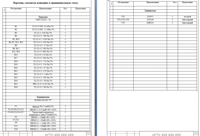 Схема электрическая принципиальная Перечень элементов вошедших в принципиальную схему