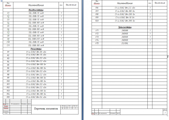 Перечень элементов