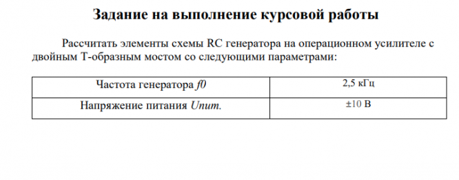 Для студентов МГТУ им. Н.Э.Баумана по предмету СхемотехникаРасчет элементов схемы RC генератора на операционном усилителе с двойным Т-образным мостомРасчет элементов схемы RC генератора на операционном усилителе с двойным Т-образным мостом