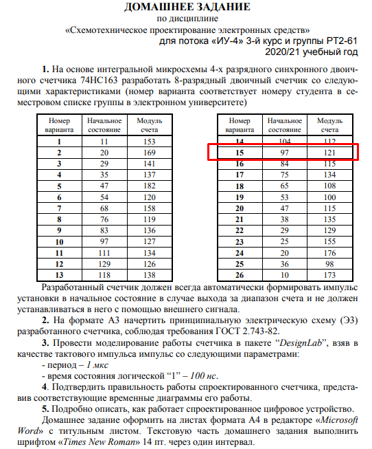 Для студентов МГТУ им. Н.Э.Баумана по предмету Схемотехника15 Вариант15 Вариант