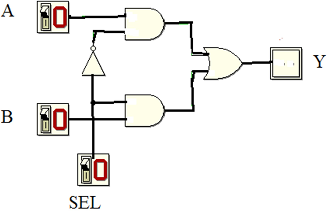 - Задание 3. Изучите поведение схемы мультиплексора 2 – 1, приведенной на рис. 1.2.