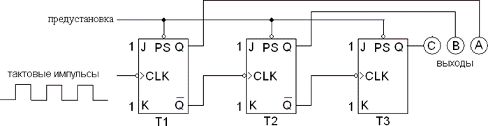 Вопрос № 2 Все JK-триггеры на рис. запускаются( фронтом, срезом ) тактового импульса.