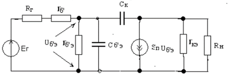 Физическая эквивалентная схема транзистора, представляющая собой электрическую модель транзистора и отражающаяего физические свойства – схема Джиаколетто представлена на рис.1):