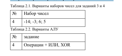 Задание 4. Требуется построить и проверить схему простого АЛУ варианты см. в табл. 2.1 и 2.2. Входные данные– коды А и В – 4х разрядные числа со знаком из табл. 2.1, Код операции COP– 4 разряда, коды для АЛУ выбираются из табл. 2.2. Коды операций (СОР): 0000 – сложение, 0001 – вычитание, 1001 И, 0010 – ИЛИ, 0011 – НЕ, 0100 – И–НЕ, 0101 – ИЛИ–НЕ, 0111 –XOR, 1000 – XNOR. Отрицательные числа подавать с преобразователя в дополнительном коде. Получить временную диаграмму и VHDL описание.
