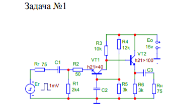 1. Дать общую характеристику схемы. 2. Определить параметры статического режима. 3. Определить амплитуду и фазу сигнала на выходе схемы.