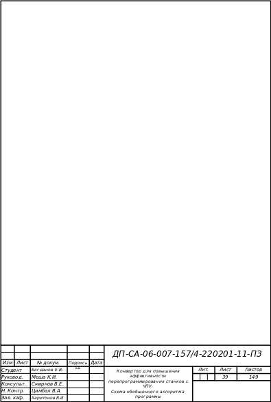 Алгоритм описывает конвертирование исходного текста программы для станков с ЧПУ. В результате программа пересчитывает все исходные координаты из одной системы программирования в другую.
