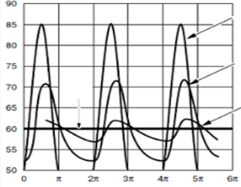 Режим с углом управления α = 60 эл. град. – в проводящем состоянии в определенные моменты времени будет находиться один тиристор