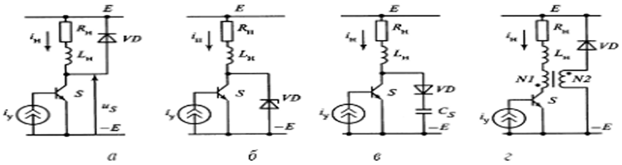 На каком из рисунков изображена ЦФТП на включение активно-индуктивной нагрузки на основе обратного диода?