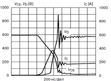 Переходный процесс включения и выключения IGBT на индуктивную нагрузку