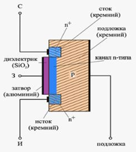 Из полевых транзисторов VT1 с индуцированным p–каналом и VT2 с каналом n–типа