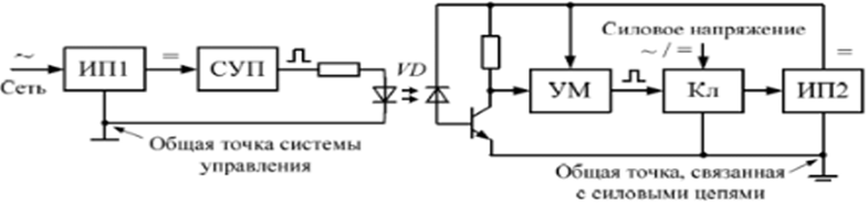 Функциональная схема усилителя мощности импульсов управления с оптоэлектронной развязкой