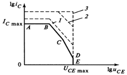 Какой участок на рисунке соответствует максимальному допустимому значению напряжения коллектор-эмиттер транзистора, превышение которого приводит к пробою структуры транзистора и выходу его из строя?