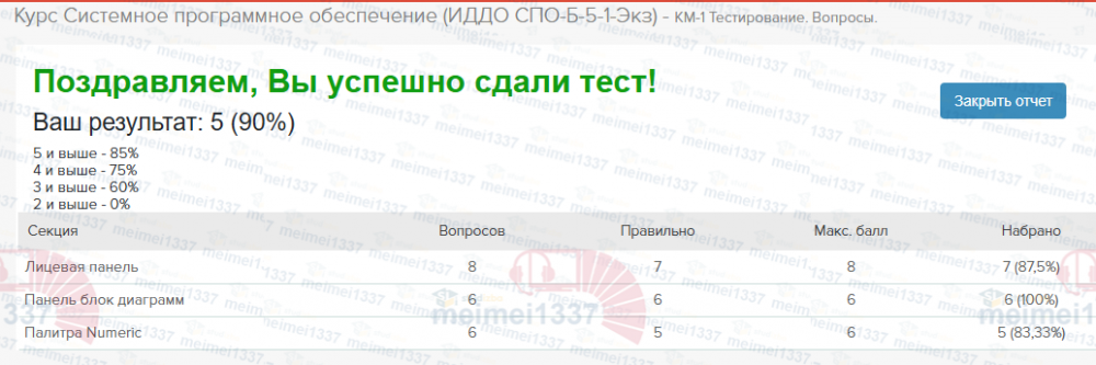 Для студентов ИДДО НИУ «МЭИ» по предмету Системное программное обеспечение (СПО)Курс Системное программное обеспечение - КМ-1 Тестирование. Вопросы - 90%Курс Системное программное обеспечение - КМ-1 Тестирование. Вопросы - 90%