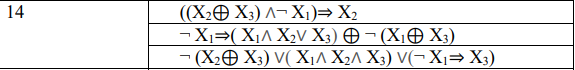 Вариант 14. Необходимо создать программу, которая будет реализовывать работу функций алгебры логики. На вход программа принимает значения логических переменных X1, X2 и X3. Результатом работы программы, будет результат вычисления заданных булевых функций. Каждый вариант задания содержит три функции.