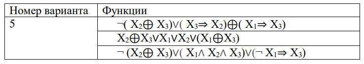 Необходимо создать программу, которая будет реализовывать работу функций алгебры логики. На вход программа принимает значения логических переменных X1, X2 и X3. Результатом работы программы, будет результат вычисления заданных булевых функций. Каждый вариант задания содержит три функции.
