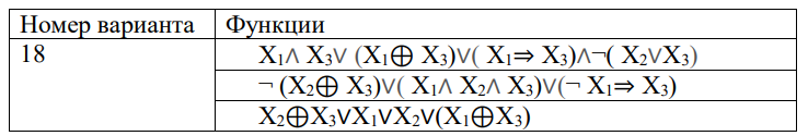 Необходимо создать программу, которая будет реализовывать работу функций алгебры логики. На вход программа принимает значения логических переменных X1, X2 и X3. Результатом работы программы, будет результат вычисления заданных булевых функций. Каждый вариант задания содержит три функции.