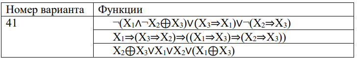 Необходимо создать программу, которая будет реализовывать работу функций алгебры логики. На вход программа принимает значения логических переменных X1, X2 и X3. Результатом работы программы, будет результат вычисления заданных булевых функций. Каждый вариант задания содержит три функции.