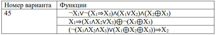 Необходимо создать программу, которая будет реализовывать работу функций алгебры логики. На вход программа принимает значения логических переменных X1, X2 и X3. Результатом работы программы, будет результат вычисления заданных булевых функций. Каждый вариант задания содержит три функции.