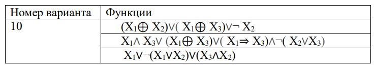 Необходимо создать программу, которая будет реализовывать работу функций алгебры логики. На вход программа принимает значения логических переменных X1, X2 и X3. Результатом работы программы, будет результат вычисления заданных булевых функций. Каждый вариант задания содержит три функции.