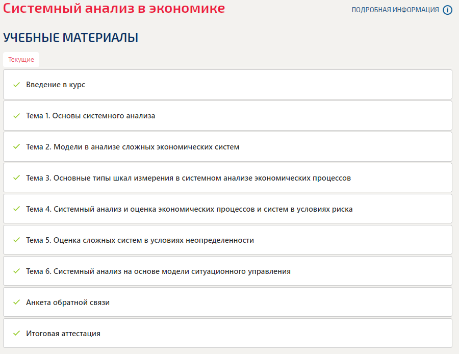 Ответы к зачёту Темы 1-6: Системный анализ в экономике вариант Итоговый тест