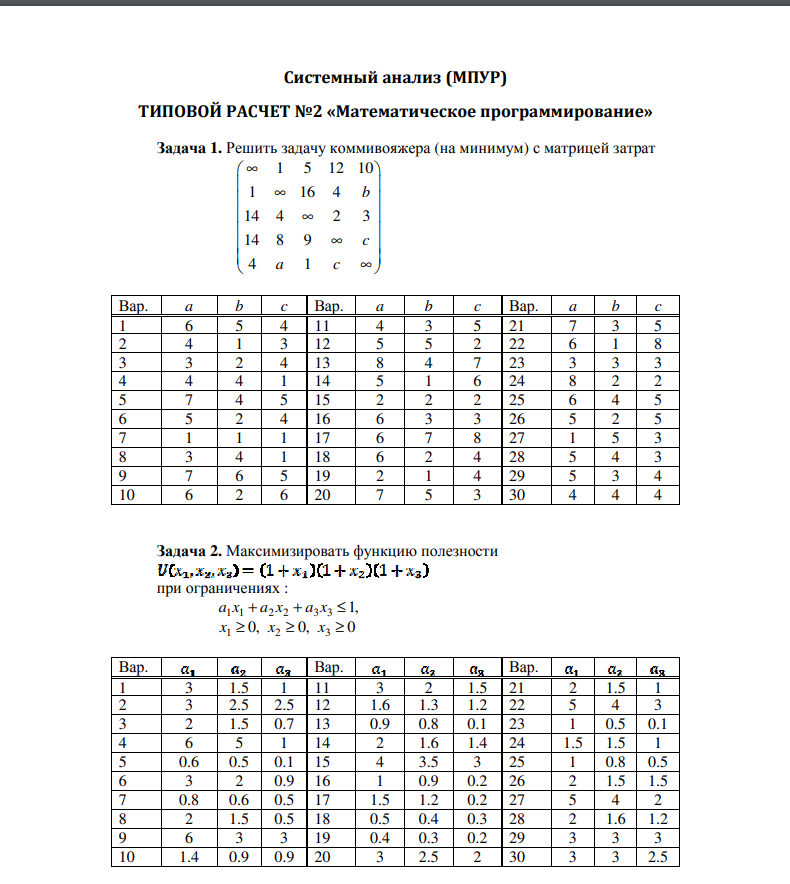 Для студентов МГТУ им. Н.Э.Баумана по предмету Системный анализ и принятие решенийТР2 «Математическое программирование» (15 В)ТР2 «Математическое программирование» (15 В)