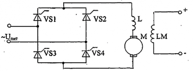 Регулирование скорости двигателя постоянного тока независимого возбуждения (таблица 2) производится по схеме (рисунок 3). Индуктивность якорной цепи предполагается достаточной для обеспечения непрерывности тока якоря и отсутствия пульсаций.