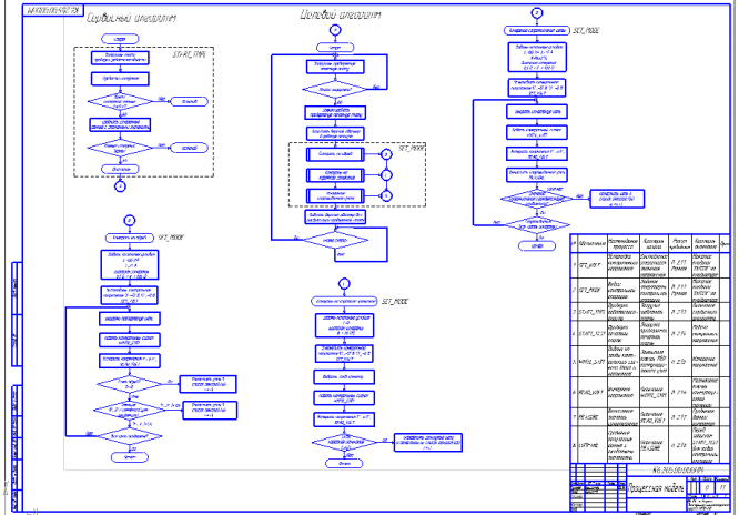 Курсовой проект выполнен в объеме 4-х листов и расчетно-пояснительной записки. На первом листе приведены блок-схемы алгоритмов и таблица ресурсов (процессная модель). На втором листе приведена комплексная принципиальная схема (КПС) механической части установки с перечнем элементов и таблицей измерительных потоков. На третьем листе приведена функциональная схема (ФС) системы связи промышленного компьютера с блоком питания и измерения, коммутационным блоком с таблицей управляющих и измерительных потоков. На четвертом листе приведена принципиальная схема одной коммутационной матрицы на мультиплексорах, управление этой матрицы специальной платой – блоком управления.
