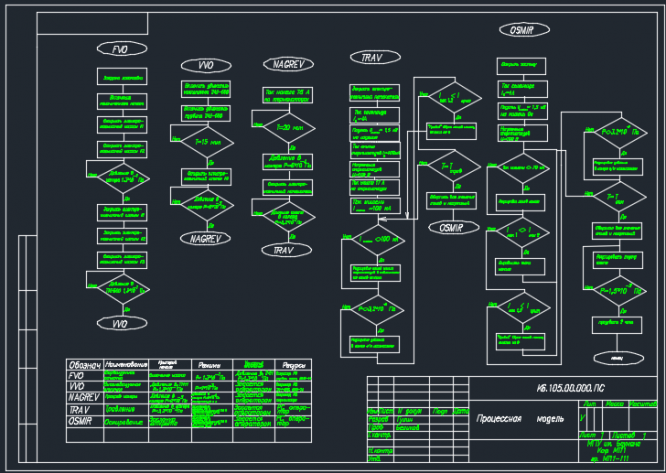 Весь цикл работы установки можно разделить на процессы (алгоритмическая схема процессов представлена на листе «Процессная модель»):