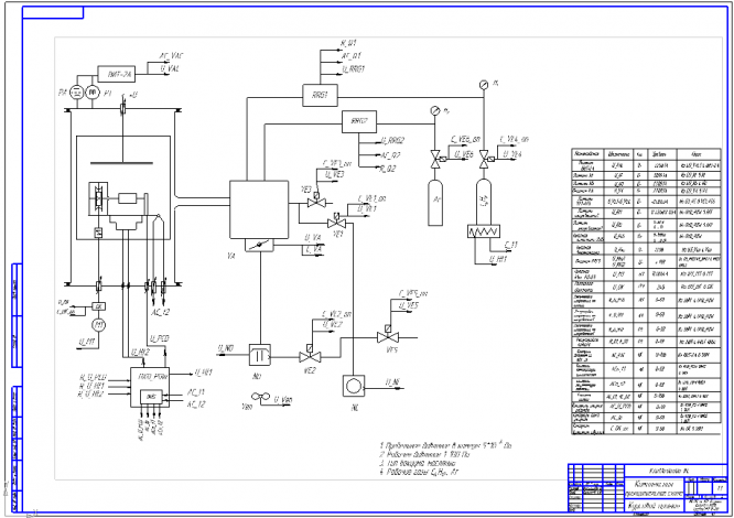 Курсовой проект выполнен в объеме 4-х листов А3 и расчетно-пояснительной записки. На первом листе приведены алгоритм работы установки и таблица процессов. На втором и третьем листах приведена комплексная принципиальная схема установки: механика, энергообеспечение, системы автоматического и ручного управления. На четвертом листе - принципиальная электрическая схема блока оптронных развязок и блока управления электромагнитными клапанами. В расчетно-пояснительной записке приведены необходимые пояснения и расчеты, отражены принципы построения СУ установки, даны описания листов проекта.
