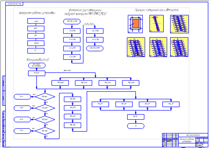 Проект выполнен в объеме 4 листов и расчетно-пояснительной записки. На первом листе показана блок схема алгоритмов работы установки. Принципиальная схема установки, таблица сигналов и перечень элементов приведены на 2 листе. На третьем листе проекта приведена комплексная принципиальная схема установки. На четвертом листе показаны электрическая принципиальная схема платы дешифрации запитывающего тестовые структуры сигнала, сборочный чертеж платы, чертежи слоев платы и чертеж отверстий.