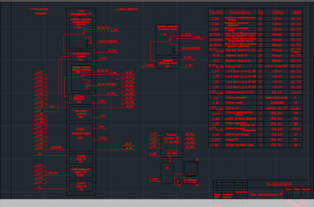 - блока питания, варабатывающего необходимые напряжения ( ~380 В, 50 Гц, ~220 В, 50 Гц, 24 В и 5В постоянного тока).