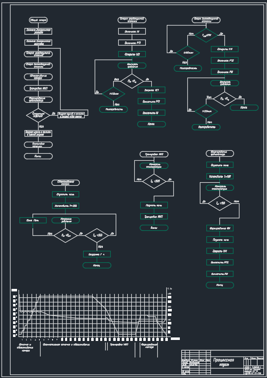 Курсовой проект выполнен в объеме 5-и листов А1 и расчетно-пояснительной записки. На первом листе приведены таблица процессов. На втором и третьем листах - комплексная принципиальная схема установки - механика, энергообеспечение, системы автоматического и ручного управления. На четвертом листе – электрическая схема управления. В расчетно-пояснительной записке приведены необходимые пояснения и расчеты, отражены принципы построения САУ установки, даны описания листов проекта.