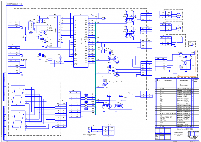 Проект выполнен в объеме 4 листов и расчетно-пояснительной записки. На первом листе приведена блок схема алгоритмов работы установки. На 2 листе показана принципиальная схема установки и таблица сигналов. На третьем листе проекта приведена комплексная принципиальная схема установки. На четвертом листе показана электрическая принципиальная схема микроконтроллера, ключи для управления вакуумными клапанами, ключи для управления двигателями заслонок в системе экспонирования и схема зажигания индикатора времени экспонирования.
