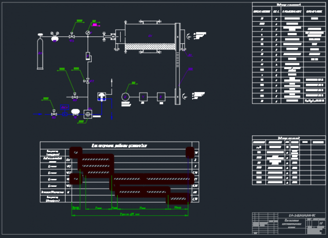 Комплексная принципиальная схема установки представлена в документе K6-2-11.00.00.000ФС на трех листах. Система может быть дифференцирована на подсистемы: