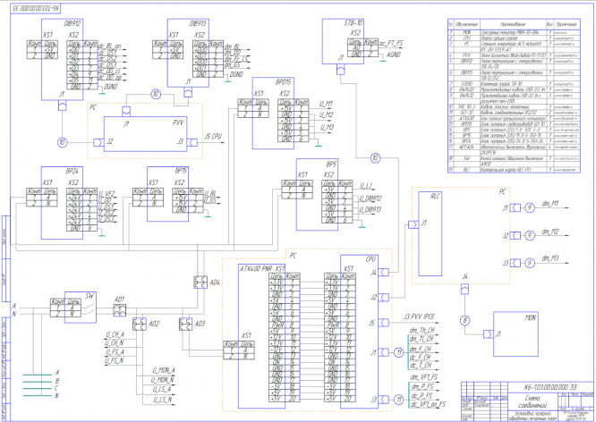 • Принципиальная электрическая схема (ЭЗ). Соединение всех основных элементов САУ; техническая документация на элементы САУ.
