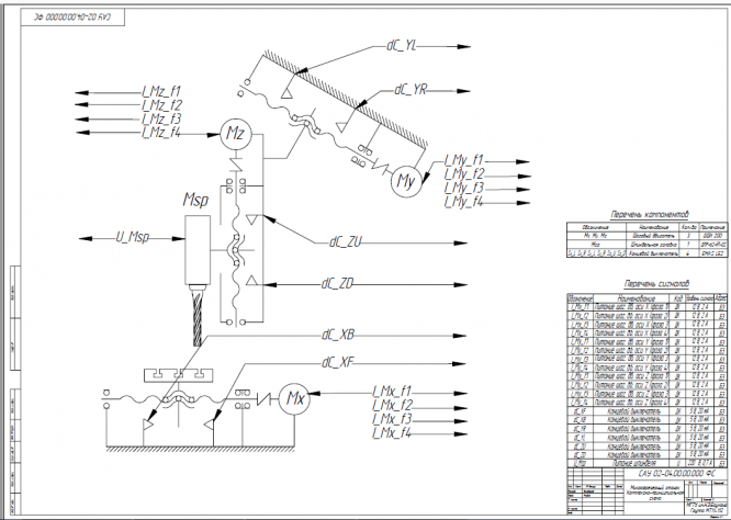 Комплексная принципиальная схема (КПС) должна отображать ресурсы машины и согласовывать их между собой. Комплексная принципиальная схема (Ресурсная модель) установки изображена на 2 листах: «Комплексная принципиальная схема установки» - механическая часть КПС, «Комплексная принципиальная схема» (Лист 2) – система управления со всеми входными и выходными сигналами.