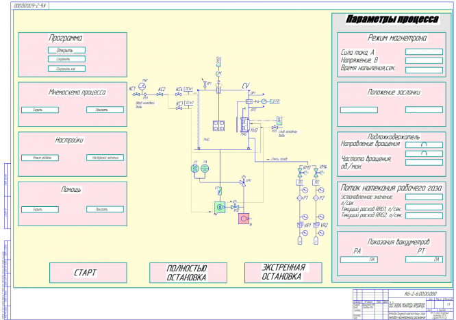 Курсовой проект содержит 5 графических листов, выполненных в пакете АСКОН КОМПАС V15. Расчетно-пояснительная записка выполнена в Microsoft Word 2010, содержит 48 листов. В проекте разработана система автоматического управления установкой нанесения тонких пленок металла.