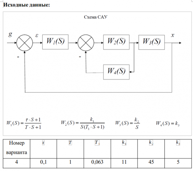 Для студентов МГТУ им. Н.Э.Баумана по предмету Системы автоматического управления (САУ) (МТ-11)Домашнее задание (Вариант 4)Домашнее задание (Вариант 4)