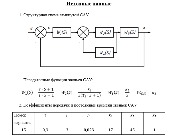 Для студентов МГТУ им. Н.Э.Баумана по предмету Системы автоматического управления (САУ) (МТ-11)ДЗ вариант 15ДЗ вариант 15