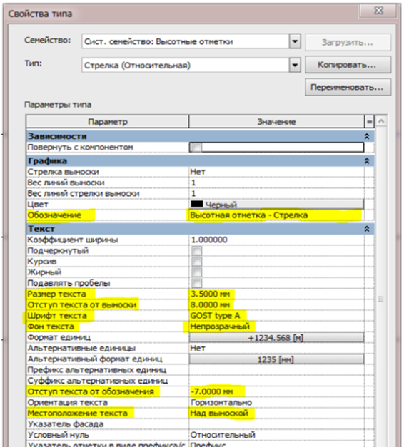 - высотная отметка