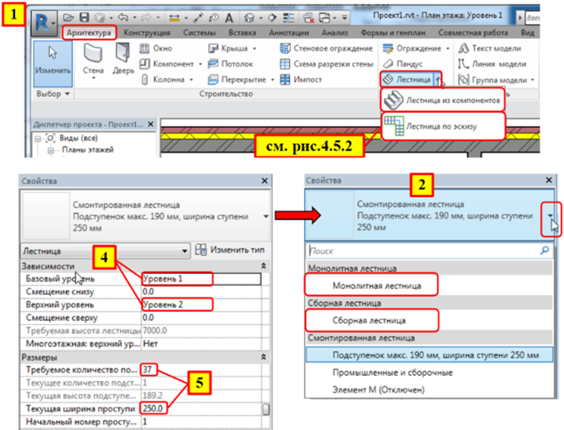 - Процесс построения лестницы