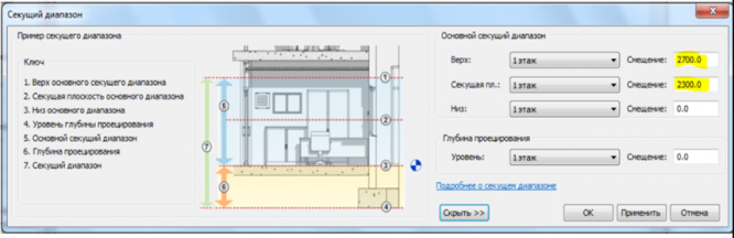 - Настройки окна «Секущий диапазон»