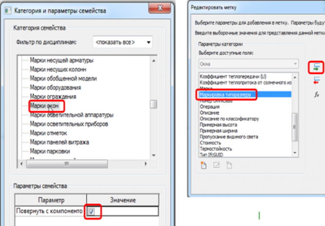 - Настройка семейств окон и дверей