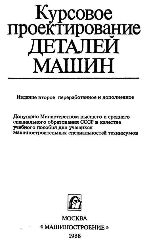 Книга: Чернавский С.А., Боков К.Н., Чернин И.М., Ицкович Г.М., Козинцов В.П. - Курсовое проектирование деталей машин