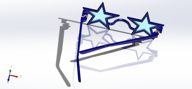 Сборочная единица должна включать в себя не менее пяти деталей, в том числе стандартные изделия. Хотя бы одной из деталей должна быть обеспечена возможность перемещения.Выбранный объект: очки с оправой в форме звезд. Объект состоит из следующих деталей: