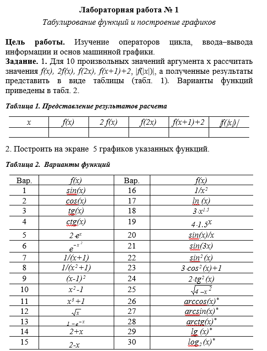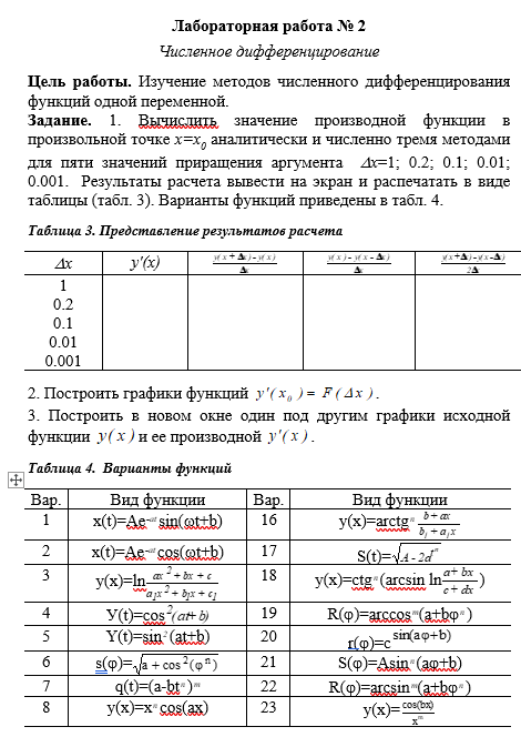 ЛР №1 - Табулирование функций и построение графиков ЛР №2 - Численное дифференцирование ЛР №3 - Численное интегрирование