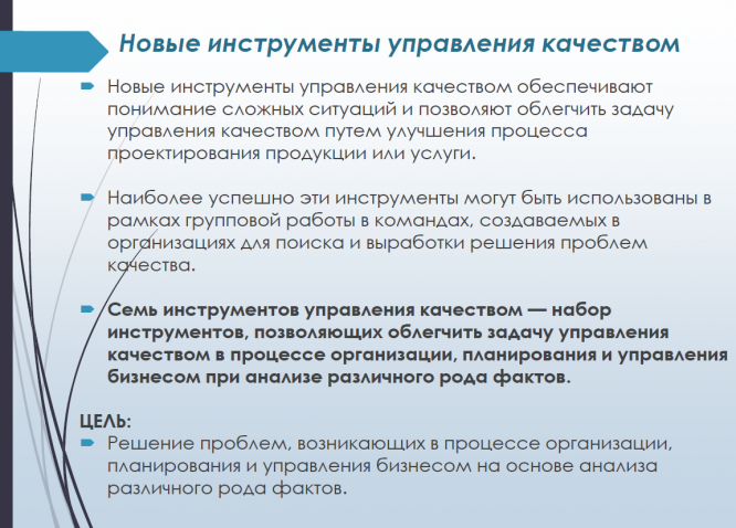 Для студентов МГТУ им. Н.Э.Баумана по предмету Системы менеджмента качестваНовые инструменты управления качествомНовые инструменты управления качеством