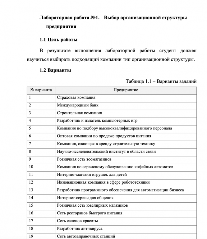Лабораторная работа 1: Выбор организационной структуры предприятия вариант 14