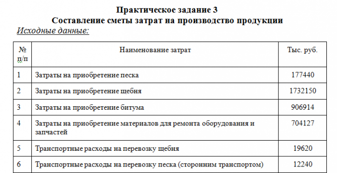 Для студентов ТюмГНГУ по предмету Сметное делоПрактическое задание 3 Составление сметы затрат на производство продукции. Задание: Выполнить группировку затрат по экономическим элементам себестоимоПрактическое задание 3 Составление сметы затрат на производство продукции. Задание: Выполнить группировку затрат по экономическим элементам себестоимо