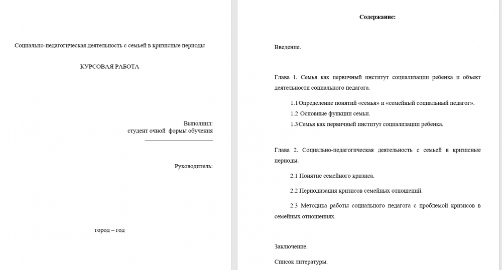 Полноценная курсовая работа на 52 страницы. Социально-педагогическая деятельность с семьей в кризисные периоды